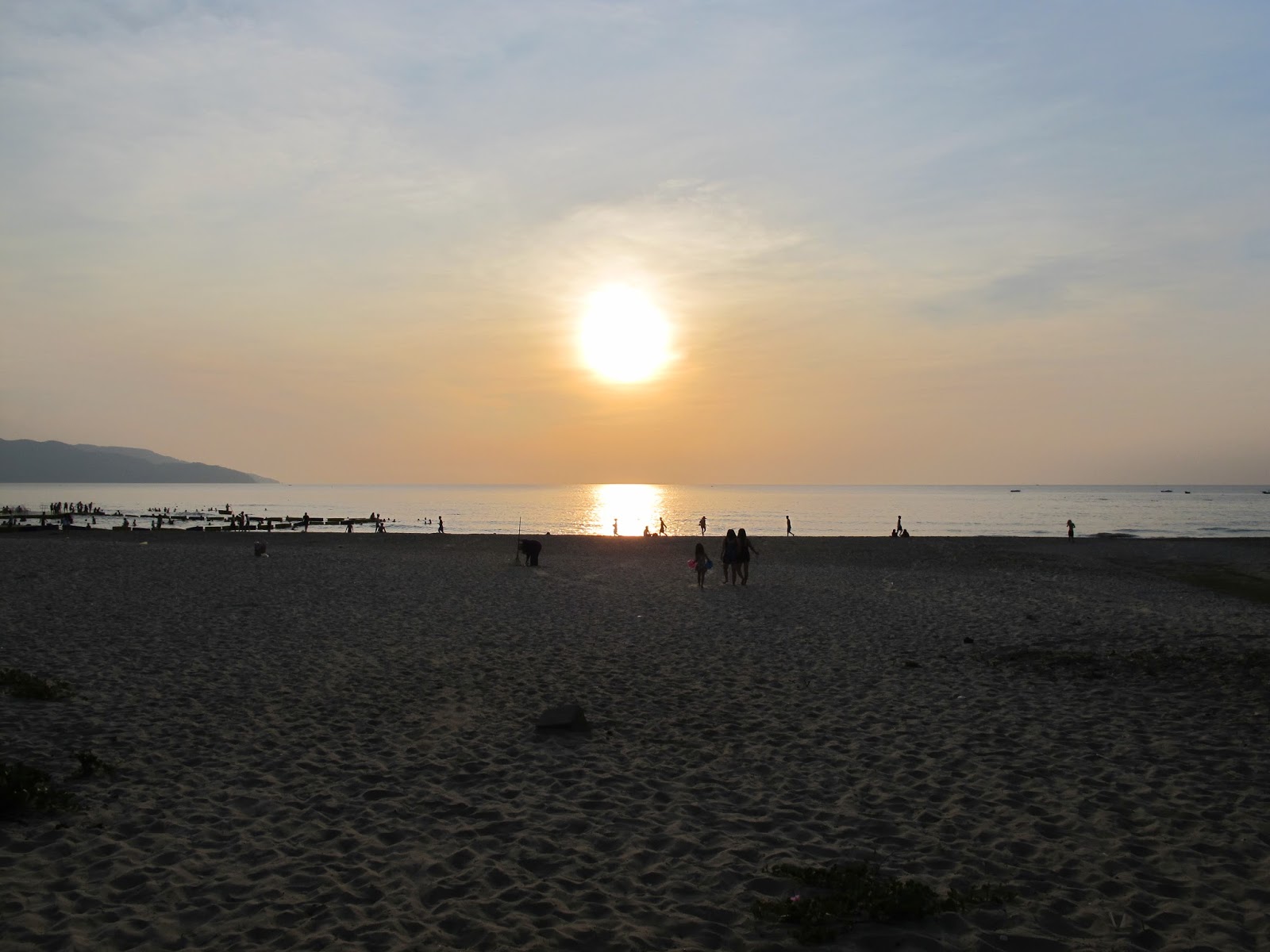 这里很早就有当地人来海边晨运了,海里也有好多游泳的人群了