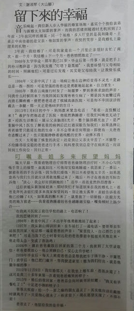 听到这里,再想想之前我心里以为公司会趁杖国之年的母亲再次受伤之故把她辞退,怎知是我这现实的小人度君子之腹。当时,我鼻子一酸,强忍那股在眼眶活跃滚动的热泪,匆匆抱歉兼道谢后离开了这充满人情味的地方......